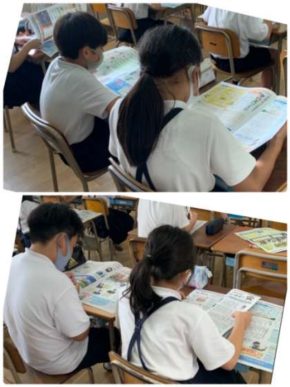4年生 総合 公開日 2021/06/17 更新日 2021/06/17 お知らせ 新聞には、どのような記事が掲載されているのか、寄贈いただいた「子ども新聞」を参考に見ています。何を題材に新聞づくり取り組むのか楽しみです。 いいね(0)