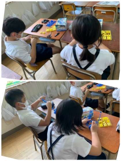 夢中で、黙々と「モーターカー」の組み立てをしています。