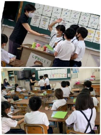 4年生の外国語活動の時間です。まずは、数字の1から20までを英語で・・・。みんなよく覚えているようです。英語で発音する数字を使ってゲームを楽しみました。まずは、ルール説明をしてもらっています。