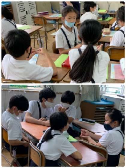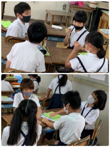 4年生 外国語活動 公開日 2021/06/22 更新日 2021/06/22 お知らせ 班ごとにゲーム開始です。各自がおはじきを好きな数だけ隠して持ちます。班全員のおはじきの合計を当てるゲームです。 いいね(0)