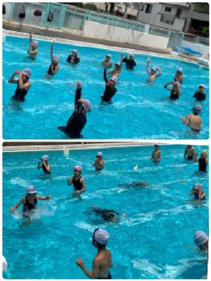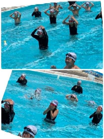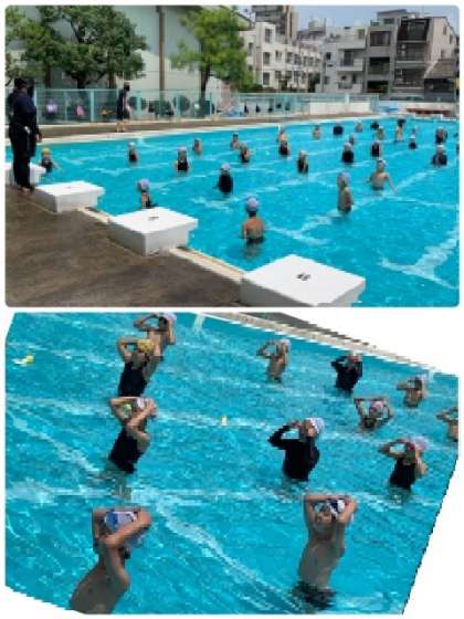 4年生の水泳学習の1回目です。4年生も久しぶりのプールです。まずは、水の慣れるところから・・・。顔を水につけて・・少しずつ深くもぐって・・次は、プールの床に指で文字を書く・・など、次々と先生から課題が出ていました。