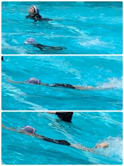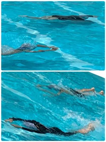 プールを横に使って、蹴伸びやバタ足で往復しました。水の中は、気持ちよさそうですね。