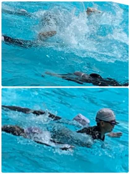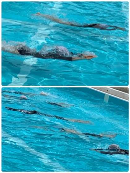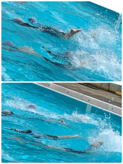 蹴上げからバタ足・・・段階を追って、いろいろな動きをしています。