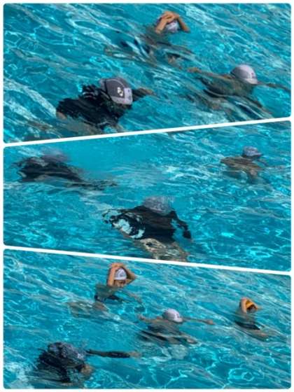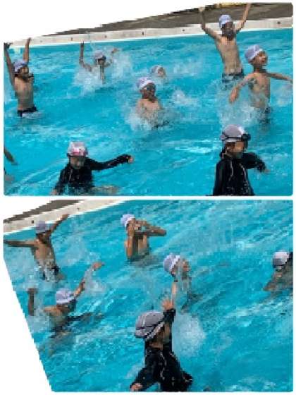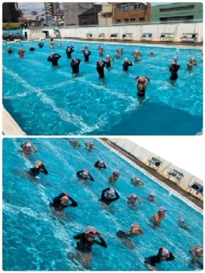 5年生の1回目の「水泳学習」の様子です。まずは水慣れから・・・。
