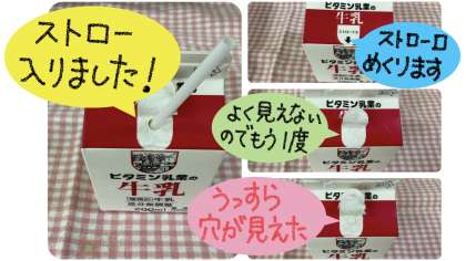 そして、毎日の牛乳ですが、ストローをさす時にいつも思うこと。ストロー口をめくるのですが、うまくめくれると穴がうっすらわかります。めくるのがうすいとよくわからず。一度できれいにめくれると「やった!」子どもたちも時々、「見て!一回できれいにめくれたよ」と教えてくれます。何だか成功した!という気分。私も時々この気分を味わっています。ですが、意外とむずかしい・・。