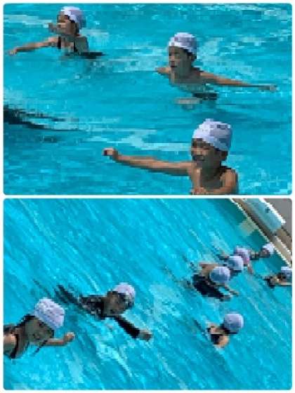 1年生 水泳学習 公開日 2021/07/01 更新日 2021/07/01 お知らせ プールを横に使って、歩いて往復しました。水の抵抗もなんのその。徐々にできることが増えていっています。 いいね(0)