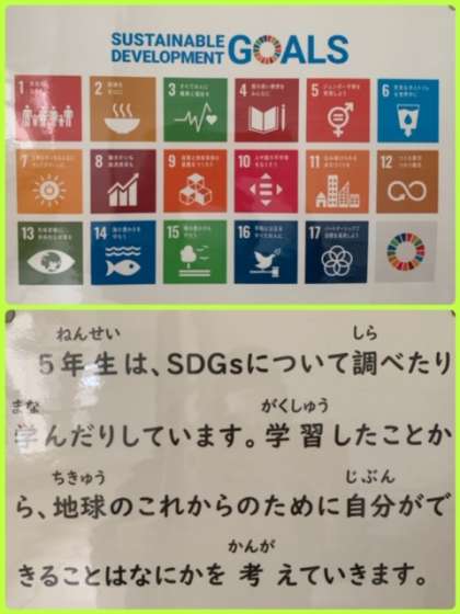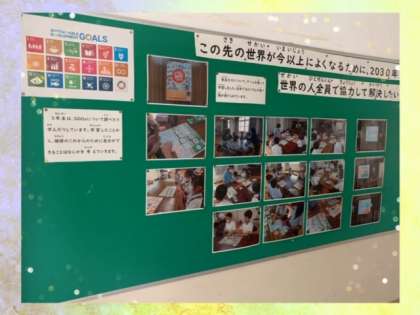 1階の掲示板に、5年生の「SDGs」の学習の写真を掲示しています。学校にお越しの際は、ご覧ください。