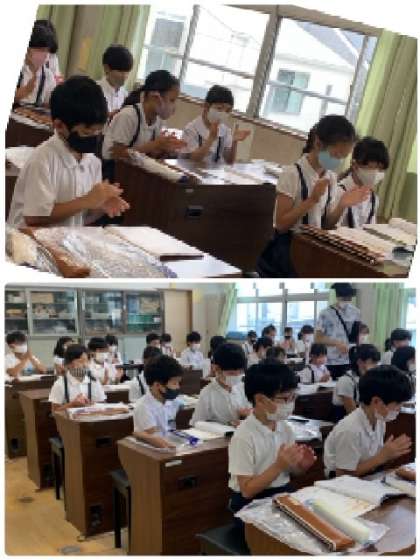 一人一人が教科書を見ながら手拍子の練習をしました。各自で取り組んでいるのですが、自然に全員の手拍子が合っていきました。みんなの気持ちが合わさって、曲ができあがっていきました。