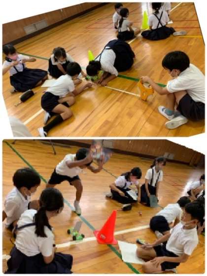3年生の理科の時間の様子です。課題「風で動く車をつくり走らせてみよう」に取り組んでいます。