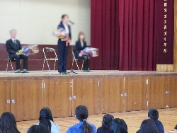 3月31日火曜日、9時から講堂で離任式がありました。今年度は、3名の方が離任されます。3月に卒業したばかりの卒業生や保護者のみなさんもたくさん講堂にかけつけてくれました。異動の詳細につきましては、4月のお手紙でお知らせします。ありがとうございました。