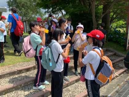 下山した5年生に、冷たいジュースのプレゼント。