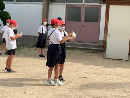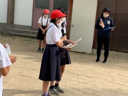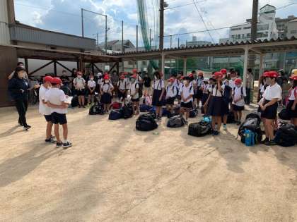 学校に到着しました。帰校式をしています。林間学習で、5年生はよく頑張っていました。その経験を2学期に生かしてくれると思います。
