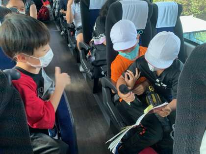 バスレクが始まりました。最初は、ヒントから連想されるものを当てるクイズです。