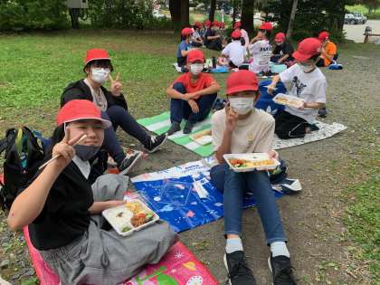 昼食です。食事係の司会で、みんなでいただきます!