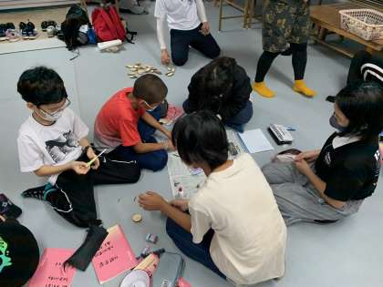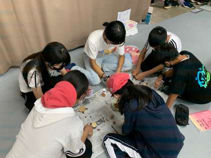気に入った木に、どんぐりなどを使ってデザインしていきます。