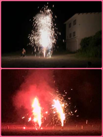 キャンプファイヤーの最後に、先生方から花火のプレゼント!