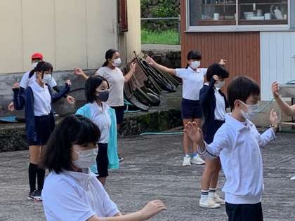 ラジオ体操をしています。