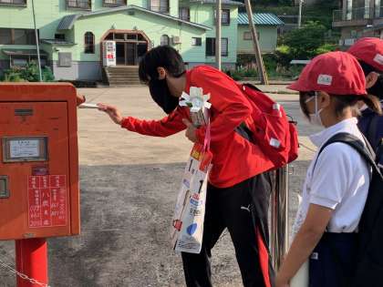 6年生林間学習 公開日 2021/07/30 更新日 2021/07/30 お知らせ カートンドッグ作りをする場所へ移動します。その途中、担任の先生が、みんなが心を込めて書いたはがきを投函しました。それぞれのご家庭に届きます。 いいね(0)