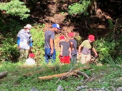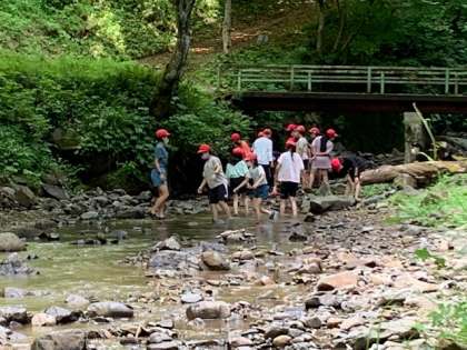 笹舟を楽しんだ後は、生き物探しをしています。