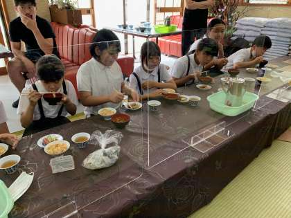 林間学習最後のご飯です。作ってくださった宿の方に感謝しながら食べています。