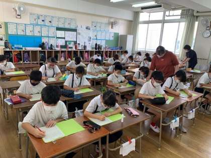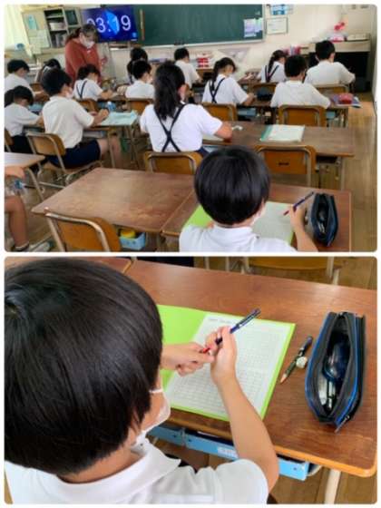 4年生 算数 公開日 2021/08/26 更新日 2021/08/26 お知らせ 今年度、第3教育ブロックの学校支援事業の予算を活用し、「徹底反復学習(陰山メソッド)」の教材を購入しました。その中から「百ます計算」を学校全体で取り組むことにしました。 4年生の算数の授業の初めに、早速、「百ます計算」に取り組んでいます。単純な計算ですが、繰り返すことで、より早く正確に計算できるようになります。集中して取り組んでくれています。 いいね(0)