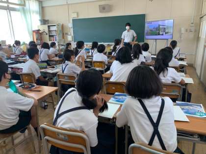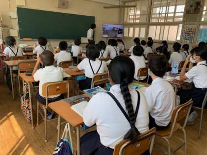 6年生の教室の様子です。パワーポイントで写真を見ながら、担任の先生から修学旅行について話をしてもらいました。本日の放課後には、保護者説明会を予定していますが、一足先に、児童たちにも説明しました。