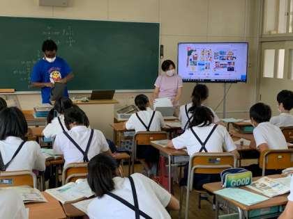 6年生の外国語の時間の様子です。2学期より、C−NETの先生にお越しいただくのが月曜日に変更になりました。