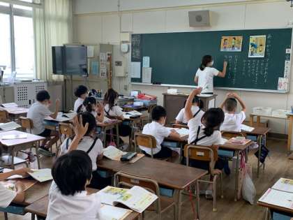 2年生の道徳の授業の様子です。読み物教材「ありがとうって言われたよ」を読んで学習を進めています。それぞれの場面で、どんな気持ちだったのかを考え、意見を出し合っていました。