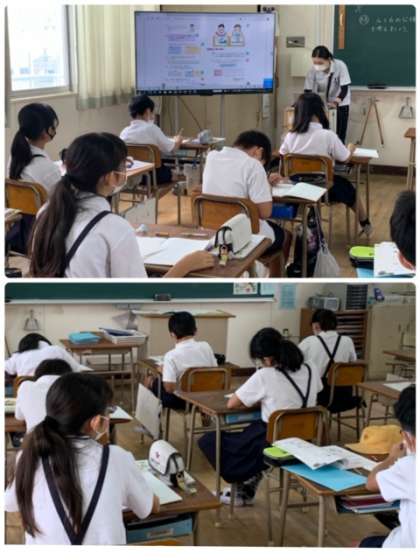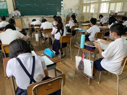 5年2組の算数の授業の様子です。1組と同じ内容の学習です。みんな、がんばっていますね。