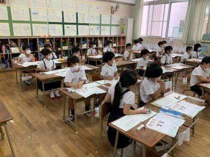 1年2組の算数の授業の様子です。単元「10より おおきい かず」の学習をしています。