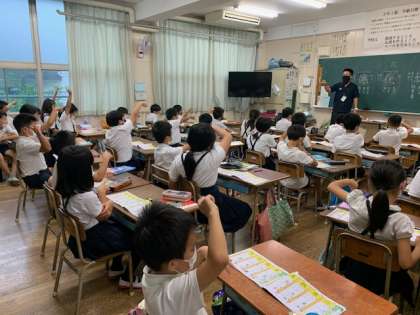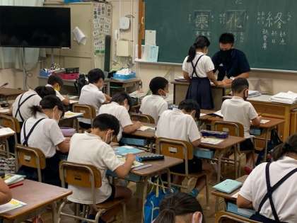 3年生 国語 公開日 2021/09/03 更新日 2021/09/03 お知らせ 3年生の国語の時間の様子です。授業の初めに、漢字ドリルに取り組んでいます。 今日の漢字は、「終(シュウ・おわり・おわる)」「化(カ・ばける・ばかす)」「寒(カン・さむい)」です。 書く時に気をつけることや、これらの漢字を使った言葉を、積極的に発表していました。書き順も指で確認し、漢字練習をしています。できた児童から、先生に見てもらっています。 いいね(0)