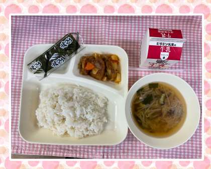 今日の給食〜お肉が大きい!〜 公開日 2021/09/03 更新日 2021/09/03 お知らせ 今日の給食は「ごはん、酢豚、中華みそスープ、焼きのり、牛乳」でした。子どもたちは、もう献立表や給食カレンダーで知っていたようで、「今日は酢豚やんなぁ!やったぁ!」と大喜び。食べる時には「お肉が大きいね!」とさらに大喜び!ボリュームがあって、おいしくて、大満足の給食でした。実は焼きのりも子どもたちには大人気です(^-^) いいね(0)