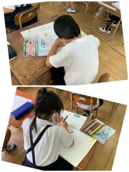 1年生 国語 公開日 2021/09/07 更新日 2021/09/07 お知らせ 1年1組の国語の時間の様子です。単元「はなしたいな ききたいな」の学習で、自分の夏休みの思い出を発表できるように準備しています。プリントに話したい内容を書き込んだので、今日の授業では、その様子を絵に描いています。 いいね(0)