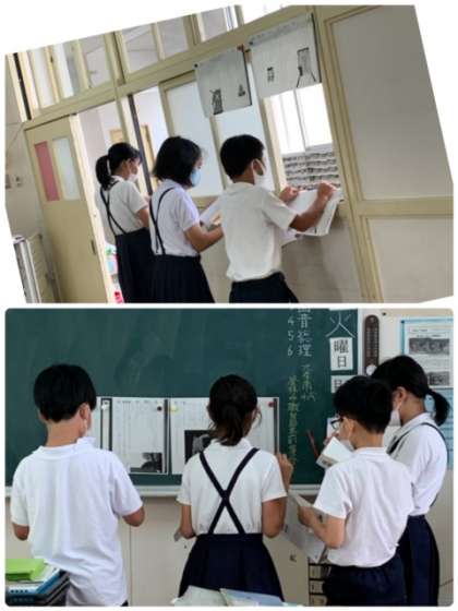 5年1組の国語の時間の様子です。2組と同じく単元「注文の多い料理店」の学習をしています。グループごとに、段落の区切りを確認しています。