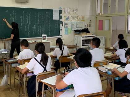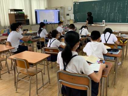5年1組の国語の授業の様子です。宮沢賢治の「注文の多い料理店」を読んで学習を進めています。今日の学習のめあては、「二人のしんしは、どんな人物なのか想像しよう」です。物語の中の「言葉や文」をピックアップして、そこからしんしたちの性格が、どう想像できるのかを考えていました。