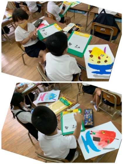 1年生 図工 公開日 2021/09/08 更新日 2021/09/08 お知らせ 1年1組の図工の時間の様子です。図工の学習で、「かき氷」の絵を描きました。かき氷の色やトッピングをそれぞれが考え、工夫して作品を仕上げています。とってもおいしそうなかき氷が出来上がりました。 いいね(0)