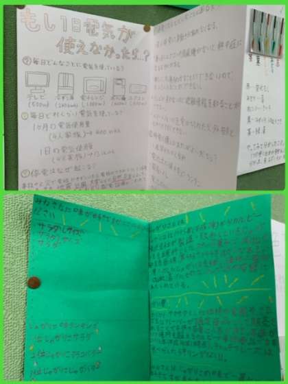 5年2組の教室の後ろに、夏休みの自由研究が掲示されています。