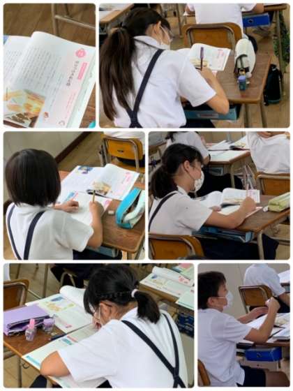 5年生 道徳 公開日 2021/09/09 更新日 2021/09/09 お知らせ 5年2組の道徳の時間の様子です。読み物教材「のりづけされた詩」を読んで、「本にのっていた詩を自分の詩に使ってしまった」和江さんの心情を考えながら、道徳ノートに自分の考えを書きこんでいます。 いいね(0)