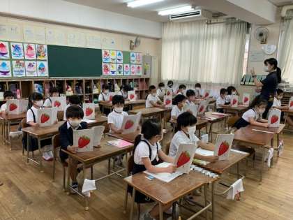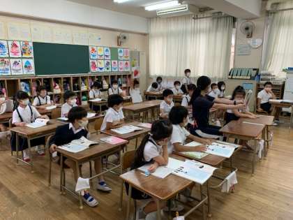 1年2組の国語の時間の様子です。単元「みんなの まえで はなしましょう」の音読をしています。