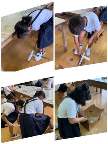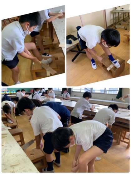 4年生 図工 公開日 2021/09/09 更新日 2021/09/09 お知らせ 今日は主に、のこぎりを使って木片を切って、パーツを作っていきました。はじめてのこぎりを使う児童もいますが、けがのないよう注意して扱っていました。次回は、切り分けたパーツを組み合わせて、最後は色づけもしていきます。 いいね(0)