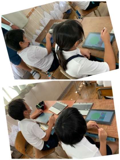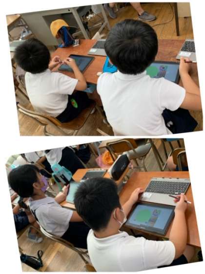 先生に教えてもらった操作をすると・・・なんと自分が描いた魚が動いていきます。