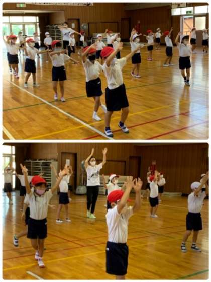 1年生の体育の時間の様子です。1・2組合同でダンスに取り組みました。