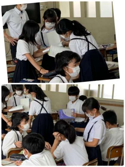 自分の考えを他の児童に伝えています。担任の先生からは、「しっかりアウトプットをするように」と言われています。