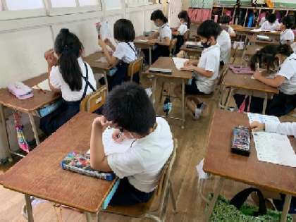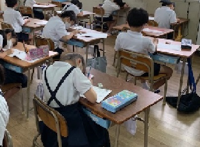 2年生の国語の時間の様子です。漢字ドリルの確認テストを実施しています。学習してきた成果はでたかな。