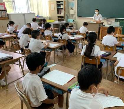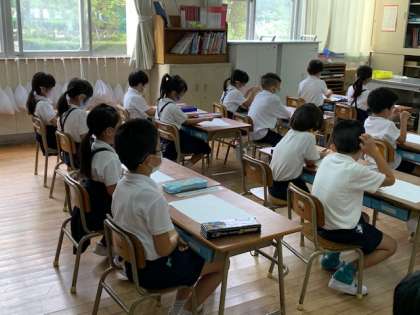 1年1組の国語の時間の様子です。単元テストのふりかえりをしています。