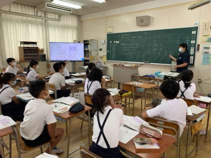 5年1組の算数の時間の様子です。今日の学習のめあては、「分母のちがう分数のたし算のしかたを考えよう」です。問題「牛乳が3分の1リットルはいったびんと、2分の1リットルはいったびんがあります。合わせて何リットルありますか」の計算の仕方を考えています。