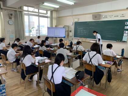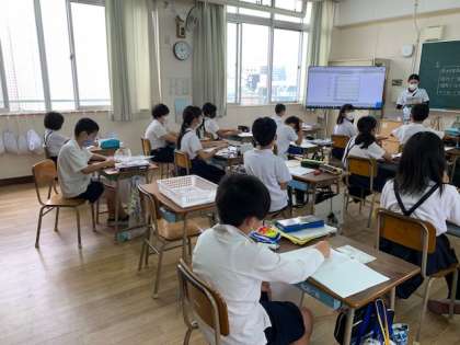 5年2組の社会の時間の様子です。今日の学習のめあては、「日本は、食材をどのくらい輸入しているのだろうか」です。1960年から現在までの「食糧自給率」をグラフ化したものを見ました。代表的な食材の1つ1つの「食料自給率」のグラフを見ると・・・・。お米以外の食料は、ほとんど輸入に頼っている事実にびっくり!この結果から、いろいろ考えさせられることがありますね。