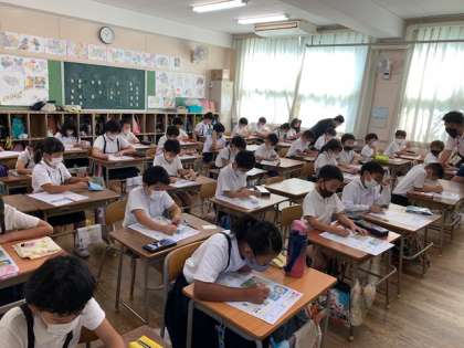 3年生の理科の時間の様子です。単元テストに取り組んでいます。