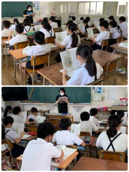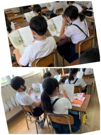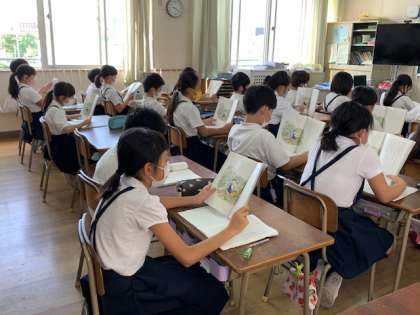 4年生の国語の時間です。単元「一つの花」の学習をしています。まずは、本文の音読をしています。
