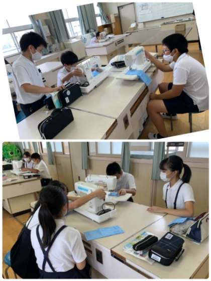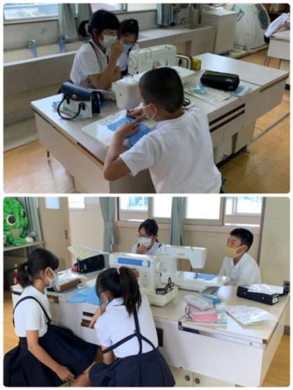 5年1組の家庭科の時間です。初めてミシンの操作を習いました。